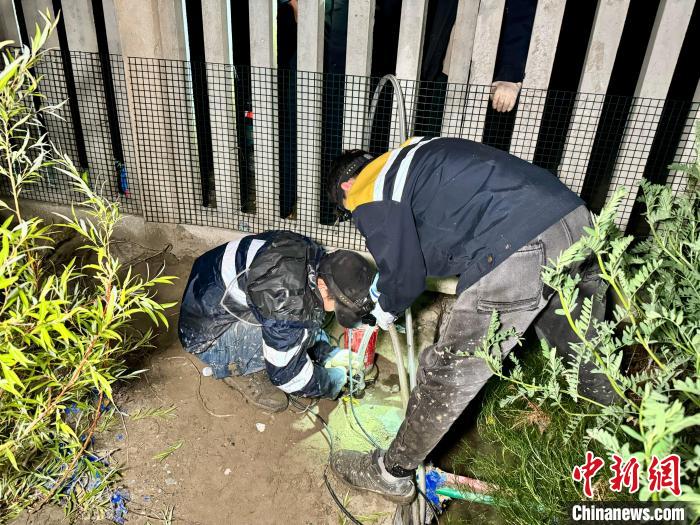 圖為桑日綜合維修車間綜合工區(qū)職工在排水溝進行抽水作業(yè)。馬生明拍攝
