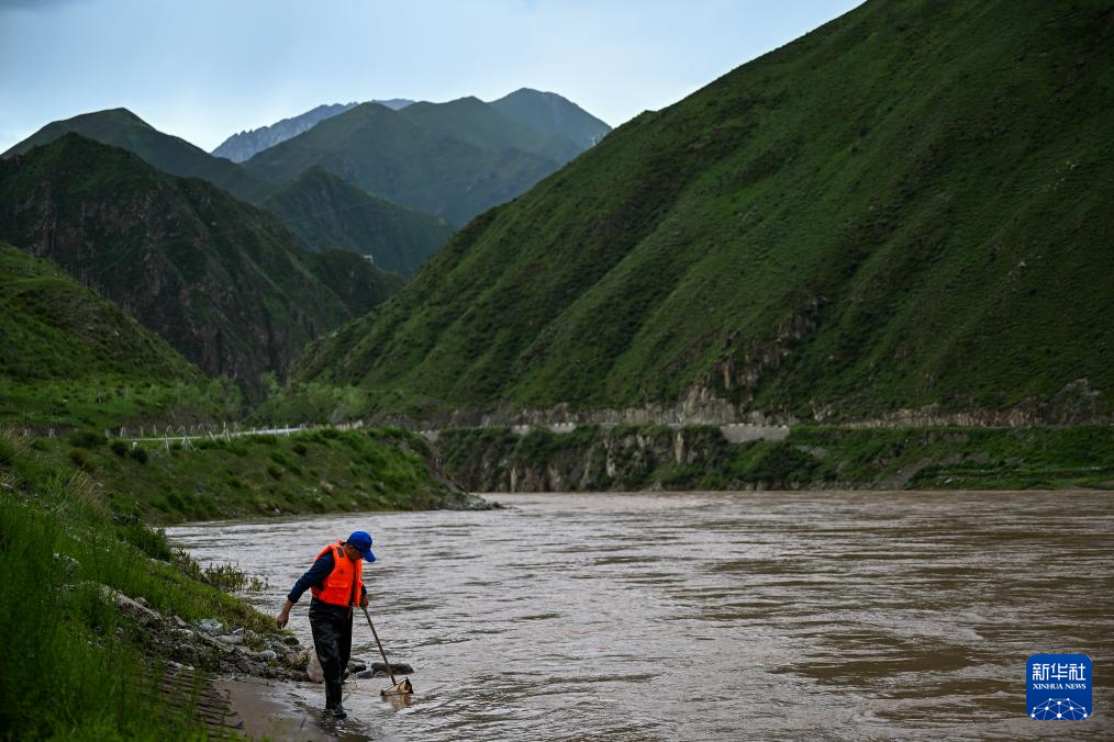 7月20日,在直門達(dá)水文站,長江科學(xué)院流域水環(huán)境研究所喬強龍開展現(xiàn)場魚類監(jiān)測。新華社記者 伍志尊 攝