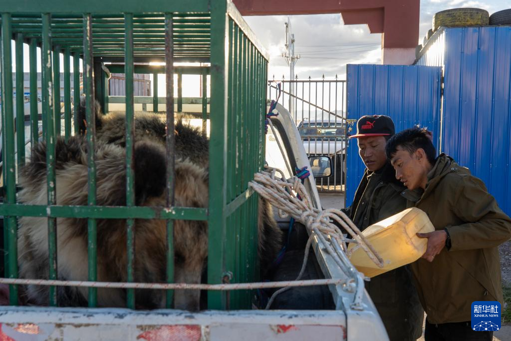 野保隊員在西藏那曲市尼瑪縣羅布玉杰野生動物管護(hù)站為放歸棕熊做準(zhǔn)備(8月30日攝)。新華社記者 姜帆 攝