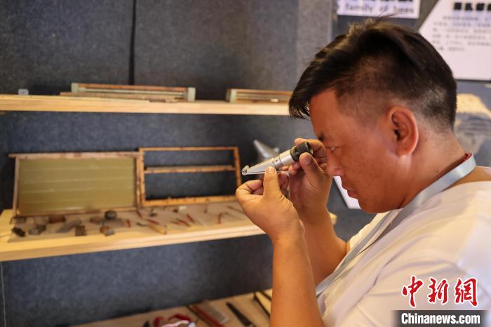 9月24日,記者跟隨2024年青海湖生態(tài)保護(hù)能力提升培訓(xùn)班來(lái)到青海省海南藏族自治州貴德縣青海青藏蜜蜂良種養(yǎng)殖場(chǎng),展示柜里擺放的蜜蜂標(biāo)本。中新社記者 薛蒂 攝