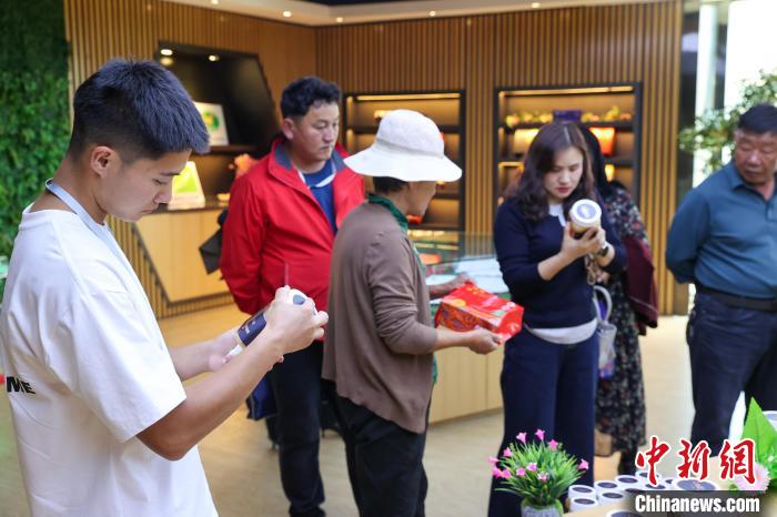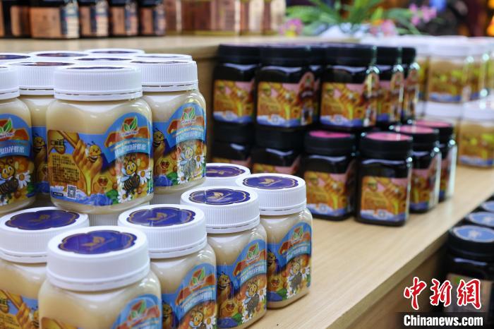 9月24日,記者跟隨2024年青海湖生態(tài)保護(hù)能力提升培訓(xùn)班來(lái)到青海省海南藏族自治州貴德縣青海青藏蜜蜂良種養(yǎng)殖場(chǎng),展臺(tái)上擺放著各類藏蜜。中新社記者 薛蒂 攝