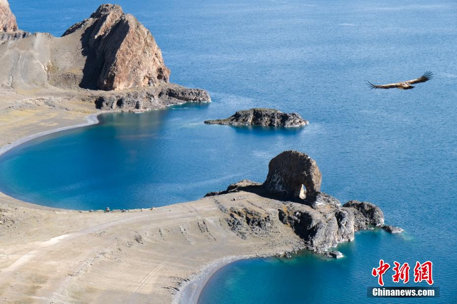 國慶期間,中新網(wǎng)記者自駕西藏藏北羌塘草原,途經(jīng)“天湖”納木錯(cuò),高原鹽湖班戈湖以及西藏第一大湖色林錯(cuò)等地。秋天高原藍(lán)天白云的映襯下,藏北湖泊猶如一面面巨大的“寶石藍(lán)”鏡子鑲嵌于高原大地,景色壯麗。圖為10月1日,西藏納木錯(cuò)圣象天門風(fēng)光。