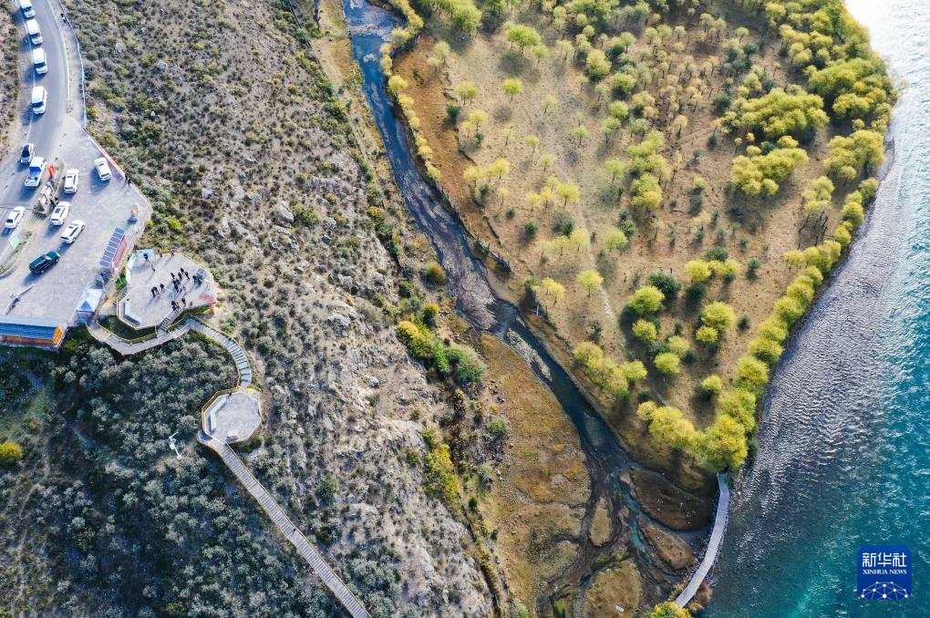 西藏林芝雅尼國家濕地公園內(nèi)的觀景臺和步行棧道(10月24日攝,無人機照片)。新華社記者 李賀 攝