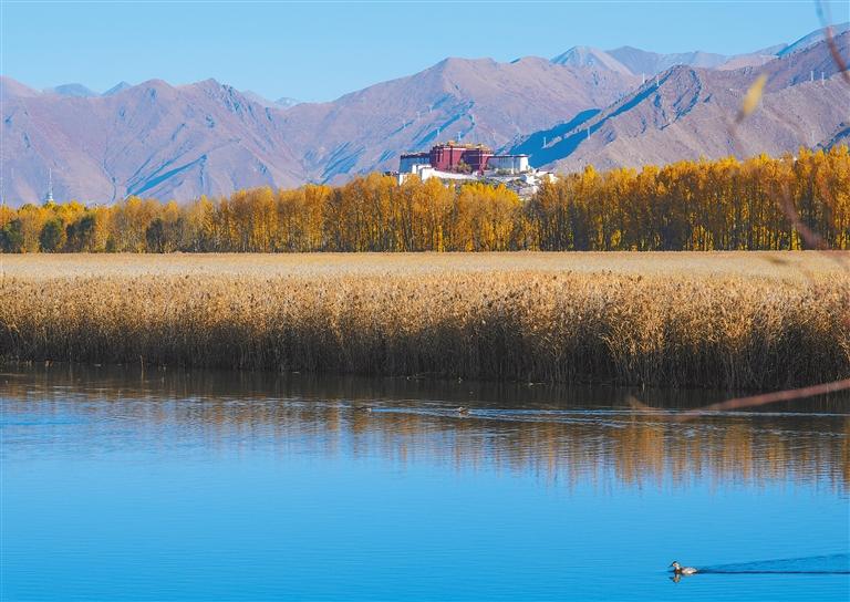 立冬時節(jié),被稱為“拉薩之肺”的拉薩市拉魯濕地國家級自然保護(hù)區(qū)景色依舊。草木盡染,水天相映,與遠(yuǎn)處的城市建筑共同構(gòu)成一幅美麗的生態(tài)畫卷。拉魯濕地是世界上海拔最高、面積最大的城市天然濕地,是拉薩市氧氣的主要補給源。