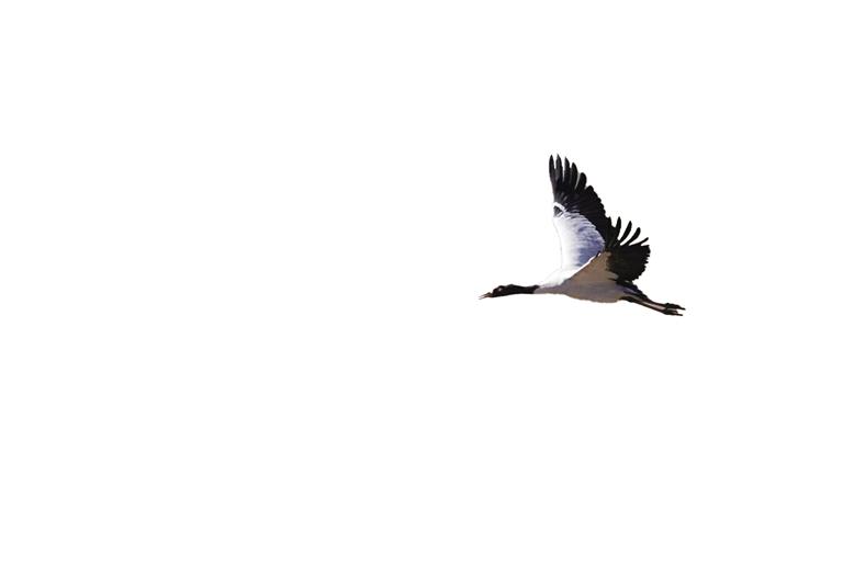 高原精靈黑頸鶴是世界上唯一一種生長、繁殖在高原的鶴類。它們體態(tài)優(yōu)美,身姿挺拔,羽毛黑白相間,頭部和頸部那一抹黑色猶如佩戴的神秘面紗,增添了幾分高貴與神秘。每年10月中下旬,它們都會展開一場跨越千里的越冬之旅。它們飛越千山萬水,來到西藏的濕地、草原和農(nóng)田中尋找溫暖與食物,續(xù)寫著生命的傳奇。