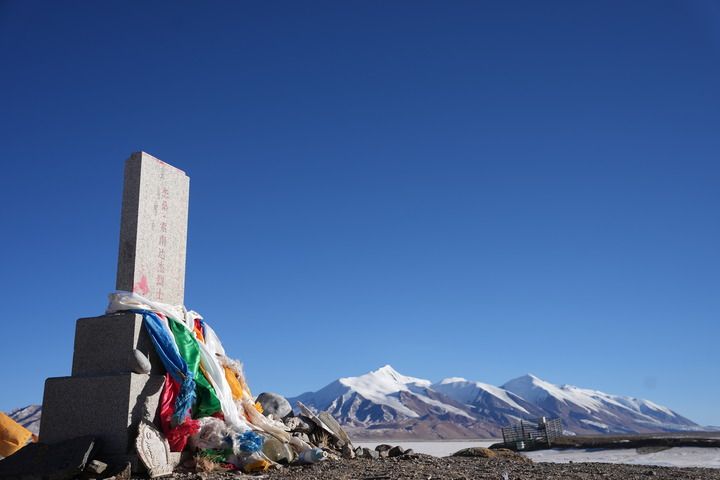 太陽湖毗鄰青海省第一高峰布喀達(dá)坂峰,被稱為“無人區(qū)中的無人區(qū)”,索南達(dá)杰的墓碑就佇立在太陽湖畔。