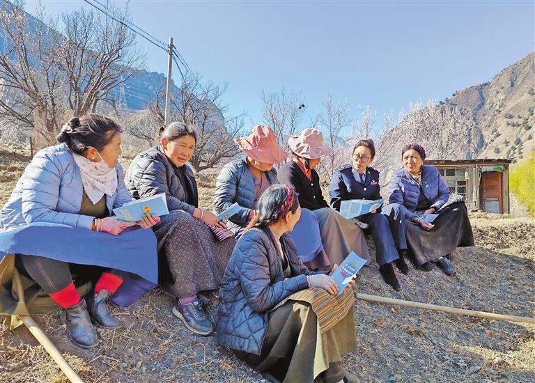 圖為朗縣稅務(wù)局工作人員走進(jìn)田間地頭,向農(nóng)牧民群眾宣傳稅費優(yōu)惠政策。記者 袁海霞 攝