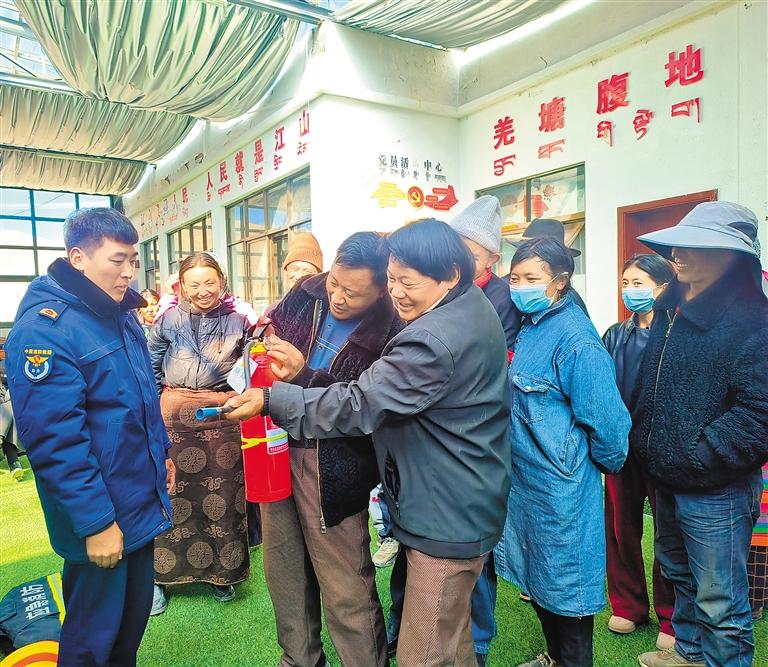 圖為改則縣消防救援大隊(duì)工作人員為牧區(qū)群眾講解消防器材使用技巧。 圖片由改則縣消防救援大隊(duì)提供