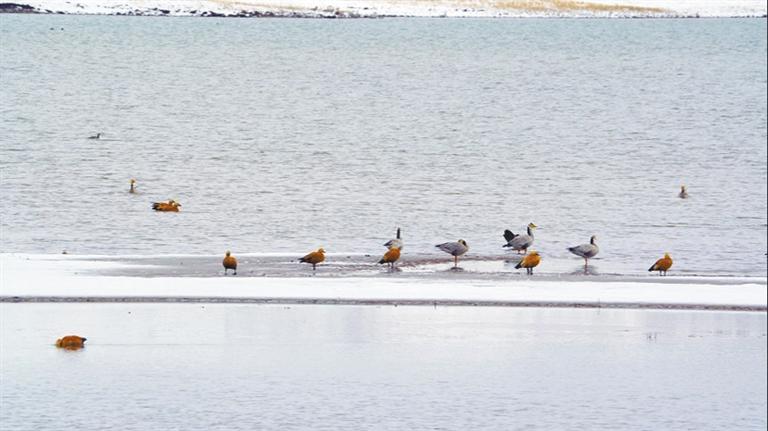野鴨棲息在林周縣卡孜水庫。圖片由記者 央金 林周融媒 提供