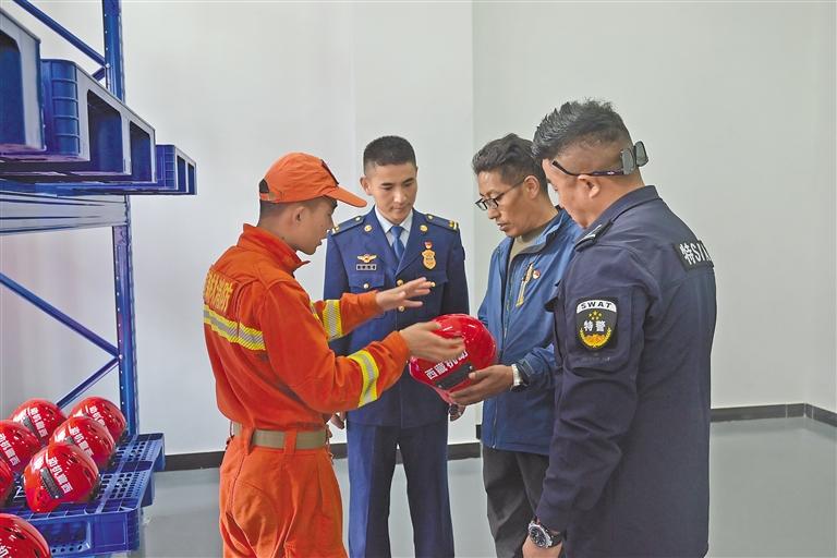 林芝市波密縣森林消防中隊(duì)消防員向縣公安局民警講解消防設(shè)備使用方法。記者 謝筱純 劉楓 通訊員 晉美 攝
