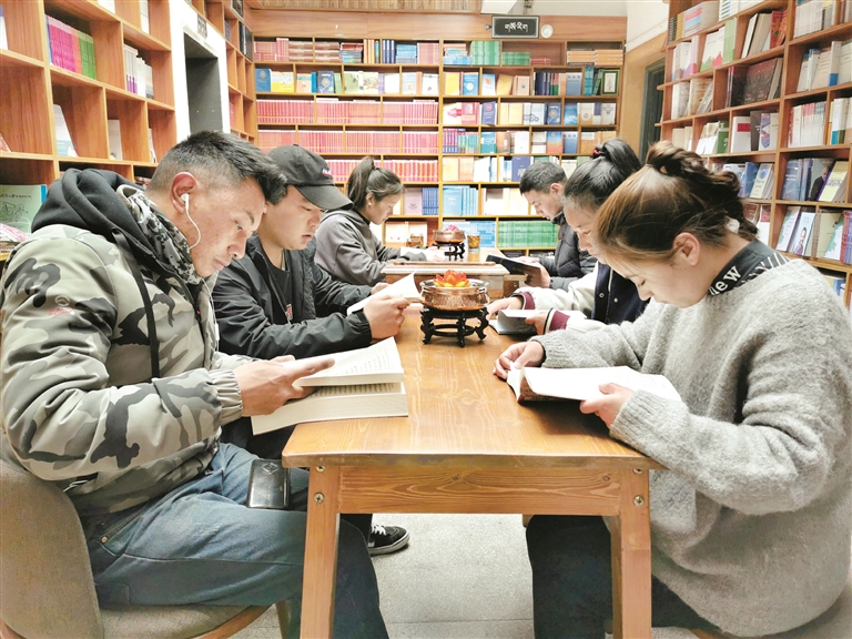 圖為市民正在書(shū)店內(nèi)看書(shū),感受閱讀的快樂(lè)。 拉薩融媒記者 拉姆次仁攝