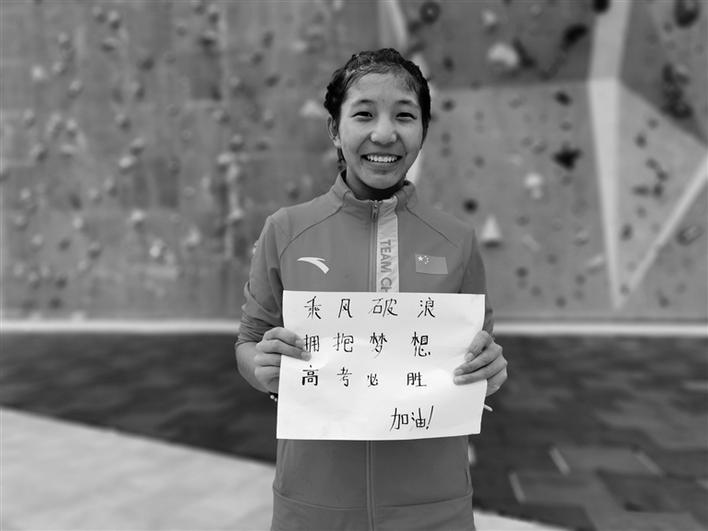 “乘風(fēng)破浪,擁抱夢(mèng)想,高考必勝?!蔽鞑鼗╆?duì)的隊(duì)員們也送來了祝福。