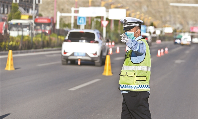 考場外執(zhí)勤的交警。拉薩融媒記者 平措旺堆 巴桑次仁攝
