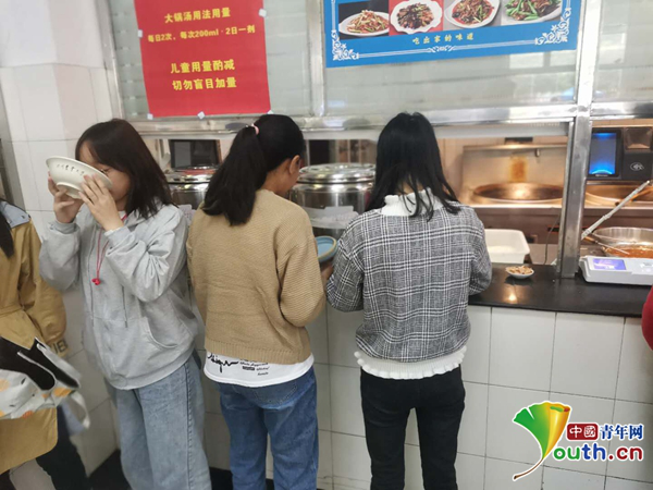圖為學(xué)生正在領(lǐng)取“大鍋湯”。中國青年網(wǎng)通訊員 廖旭 攝