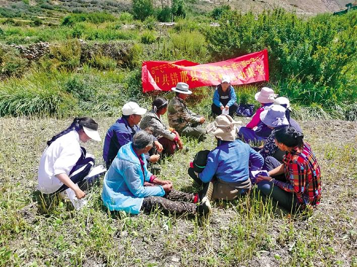 圖為西藏山南市錯那縣委組織部部務會成員深入田間地頭對農牧民黨員開展黨課教育。次仁片多 索朗瓊珠 通訊員 李蒙 攝