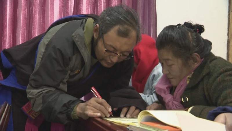 年末的安多早已步入寒冬,忙碌的時(shí)節(jié)已接近尾聲。隨著牧閑時(shí)節(jié)的到來(lái),帕那鎮(zhèn)一村的“夜?!睙狒[非凡,不時(shí)傳來(lái)一陣陣讀書聲。每年這個(gè)時(shí)候,帕那鎮(zhèn)一村宣傳委員嘎達(dá)會(huì)按時(shí)組織牧民們一起補(bǔ)習(xí)他們?cè)?jīng)落下的藏文、語(yǔ)文、數(shù)學(xué)基礎(chǔ)和政策知識(shí)、科學(xué)文化、法律法規(guī)等知識(shí)內(nèi)容。