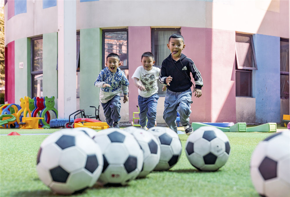 這是西藏自治區(qū)實(shí)驗(yàn)幼兒園大班的孩子們進(jìn)行足球訓(xùn)練(2019年8月22日攝)。新華社記者 孫非攝