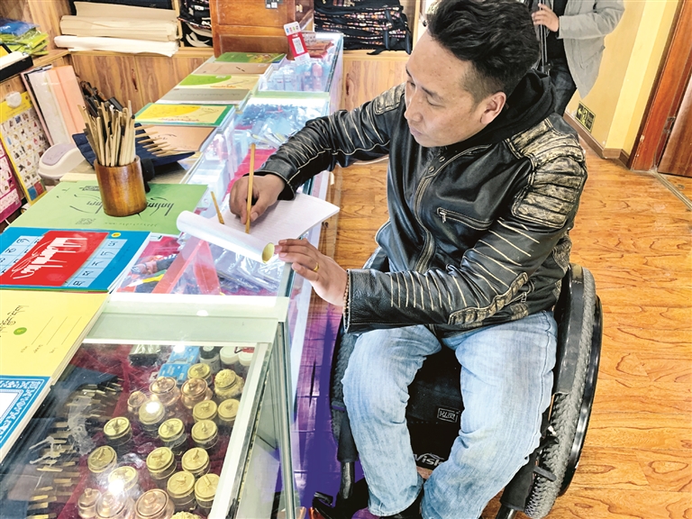 走進(jìn)位于八廓商城的西藏拓崗文化傳播有限公司,覺(jué)列正忙著一天的產(chǎn)品研發(fā)、銷(xiāo)量等統(tǒng)計(jì)工作?;仡欁约哼@些年所經(jīng)歷的種種,他充滿感慨地說(shuō):“沒(méi)有精準(zhǔn)扶貧政策,就沒(méi)有我的今天。我不是一個(gè)人在戰(zhàn)斗,黨和政府是我們殘障人士最堅(jiān)強(qiáng)的后盾?!?/p>