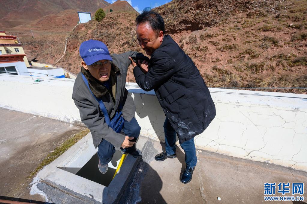 5月3日,在西藏昌都市類烏齊縣吉多鄉(xiāng)小學(xué),李純民(中)在吉多鄉(xiāng)小學(xué)學(xué)生食堂樓頂,監(jiān)督太陽能熱水器的維修工作。2014年至2020年,“齊興”助學(xué)獎(jiǎng)勵(lì)基金通過多種方式,籌集資金200多萬,為類烏齊縣12所鄉(xiāng)鎮(zhèn)小學(xué)安裝太陽能熱水器和多媒體教學(xué)一體機(jī)。新華社記者 劉金海 攝