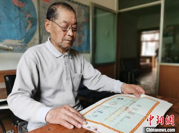 圖為朱汝完整理個(gè)人在浙江省永康中學(xué)初中部的畢業(yè)證書(shū)?!?zhí)砀?攝