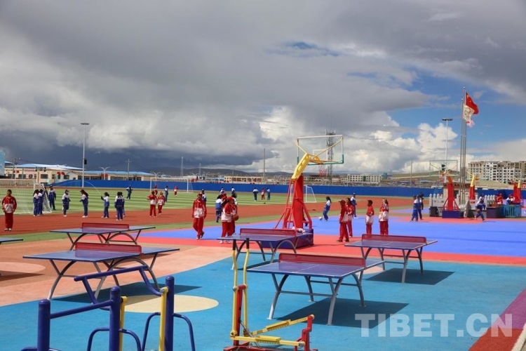 圖為西藏自治區(qū)那曲市色尼區(qū)杭嘉中學(xué)的學(xué)生們正在操場上進(jìn)行各種體育活動 攝影:吳建穎