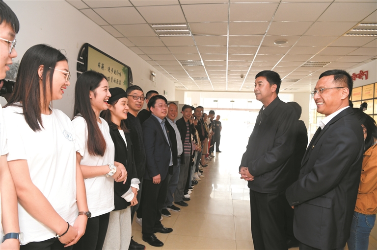 “你們辛苦了!祝大家節(jié)日快樂,身體健康,扎西德勒!”嚴(yán)金海先后來到拉薩北京高中、拉薩江蘇實(shí)驗(yàn)中學(xué),看望慰問一線教師,與他們親切交談,向全市廣大教師和教育工作者致以崇高敬意,感謝他們?yōu)槲沂薪逃聵I(yè)作出的貢獻(xiàn)。并實(shí)地調(diào)研了解學(xué)校硬件設(shè)施、招生教學(xué)、國家統(tǒng)編三科教材使用等情況。嚴(yán)金海指出,無論是昨天、今天還是明天,西藏的發(fā)展都離不開一代又一代用知識(shí)武裝起來的建設(shè)者的努力,這都是老師們精心培養(yǎng)的結(jié)果。教師的職業(yè)是最光榮的,老師也是最偉大的,向您們致敬。只有好老師,才能教出好學(xué)生。希望大家認(rèn)真學(xué)習(xí)貫徹習(xí)近平總書記關(guān)于教育工作特別是教師隊(duì)伍工作的重要論述,學(xué)習(xí)貫徹習(xí)近平總書記對(duì)黃大年式教育團(tuán)隊(duì)教師代表的回信精神,堅(jiān)持立德樹人根本任務(wù),加強(qiáng)教學(xué),提升質(zhì)量,做“四有”好老師,努力培育德智體美勞全面發(fā)展的社會(huì)主義建設(shè)者和可靠接班人。