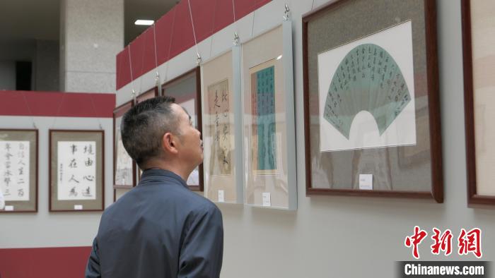 圖為市民在展廳內(nèi)觀看書法作品?!≈x牧 攝