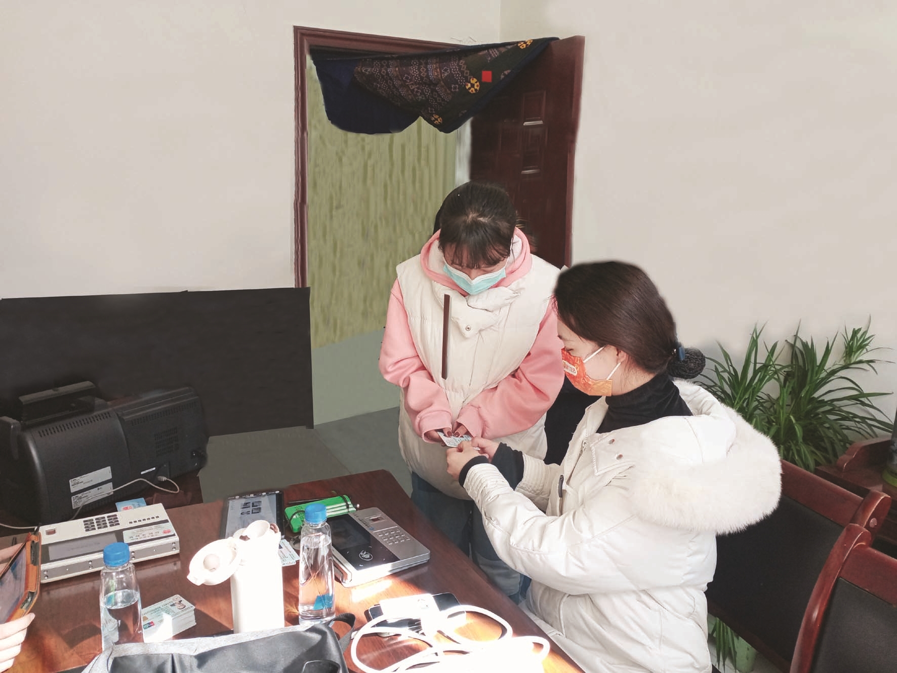 貢覺(jué)卓瑪是西北民族大學(xué)大三學(xué)生,信息采集成功后,她和其他孩子們來(lái)到即時(shí)制卡現(xiàn)場(chǎng)排隊(duì)領(lǐng)卡。工作人員將制好的社保卡激活后,交給他們,并講解如何使用。