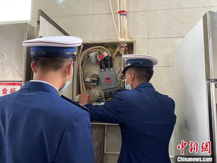 圖為消防指戰(zhàn)員檢查消防重點(diǎn)部位。卡若區(qū)森林消防中隊(duì) 攝