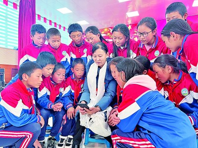 以藍天為幕布,以學校為舞臺,即使天氣寒冷也擋不住大家聆聽“精神食糧”的熱情?!斑^去,學校只有兩排小平房,土坯墻打的黑板,冬天取暖還用干牛糞呢!現(xiàn)在可不一樣了,現(xiàn)代化的教學設備、高水平的師資力量,高質(zhì)量的教學模式,讓牧民們的理念發(fā)生了根本性變化,越來越重視孩子的教育了。”斗后索寄宿制小學校長萬瑪項青感慨。