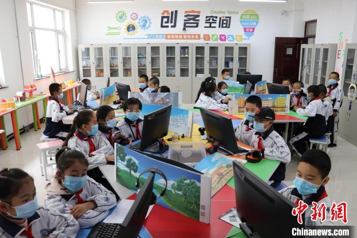 在天祝縣天師附小智慧教室內(nèi),農(nóng)牧區(qū)的孩童“觸網(wǎng)”感知外面的世界?!√熳?h委宣傳部供圖