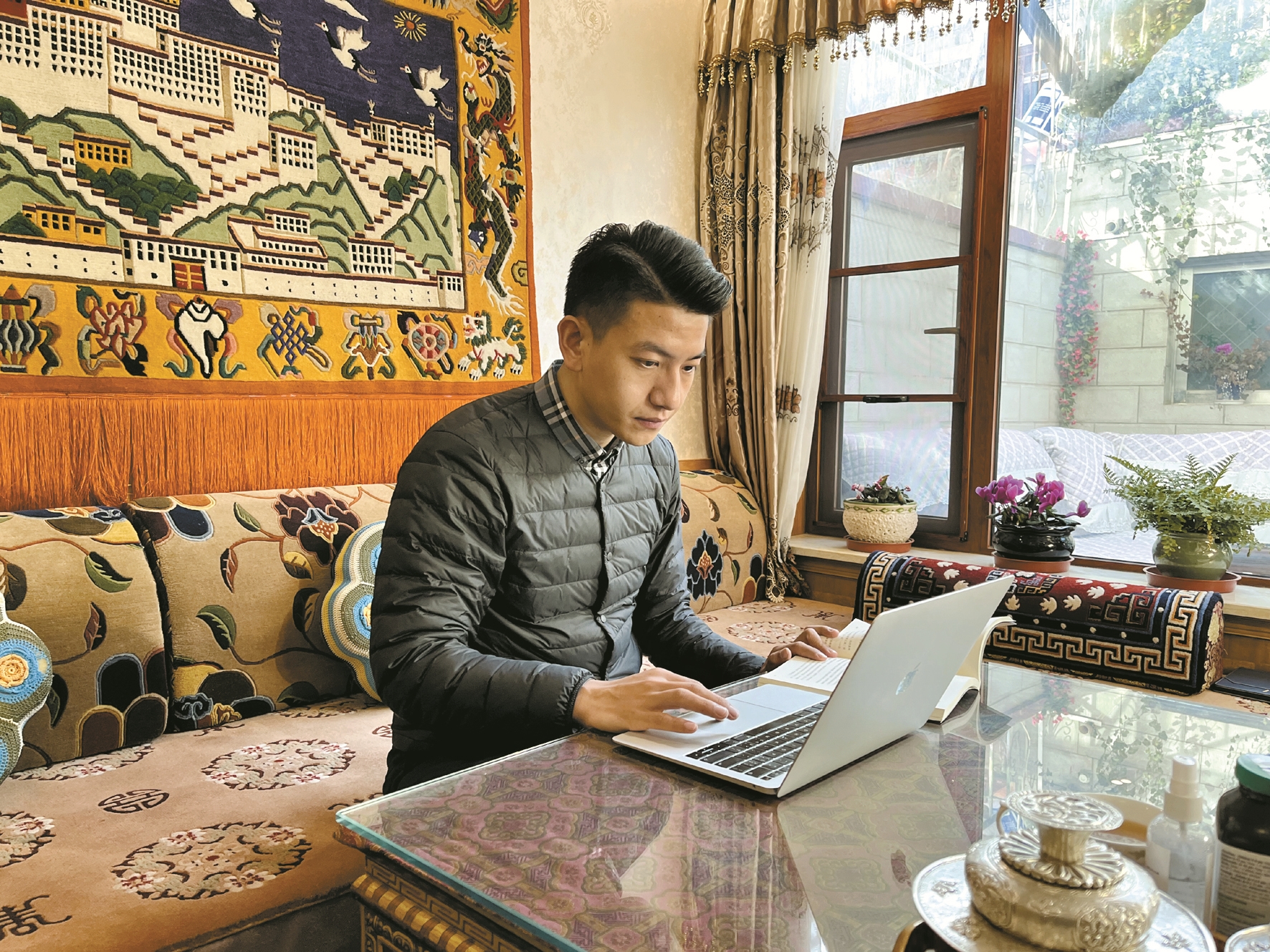 冬日午后,記者在家中見到丹臻群佩時,他正在認(rèn)真品讀《如何講好中國故事》一書。作為清華大學(xué)新聞與傳播學(xué)院的一名博士生,他正在思考如何用中國的話語、中國的智慧、中國的方案,結(jié)合西藏特色、拉薩特點(diǎn),把民族團(tuán)結(jié)故事講好,并且講出去。