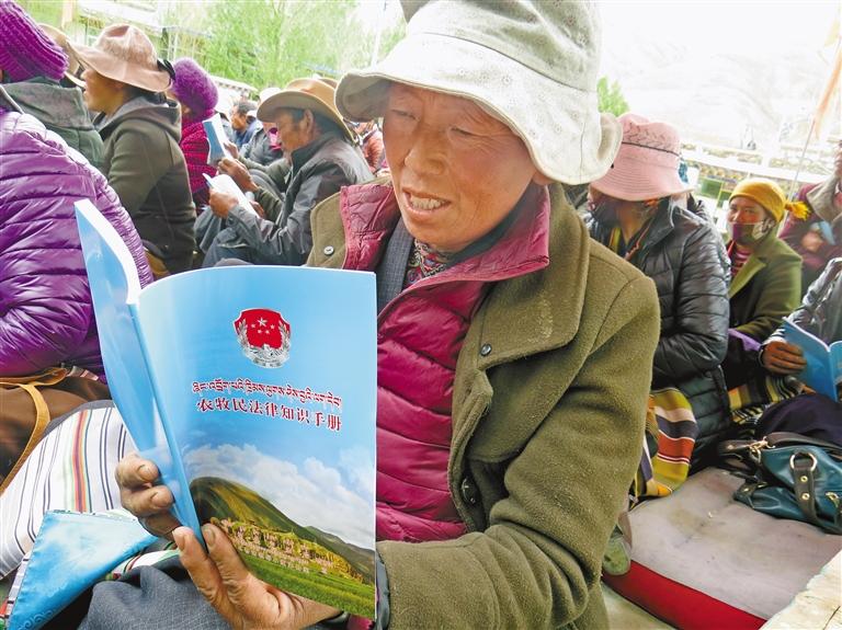 圖為村民認真學習《農牧民法律知識手冊》。記者 巴桑旺姆 攝