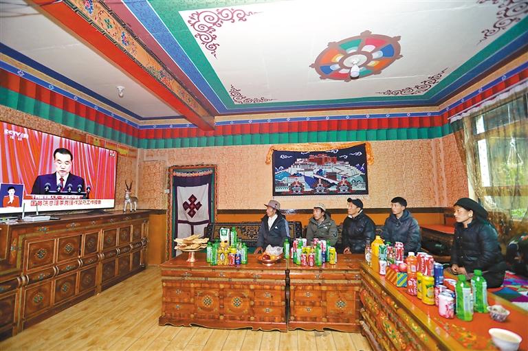 西藏廣大干部群眾收聽收看十四屆全國(guó)人大一次會(huì)議開幕盛況