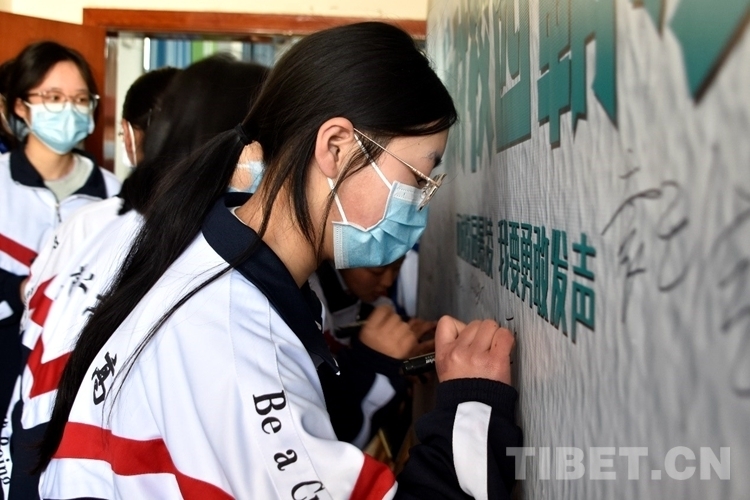 圖為學(xué)生們依次在面對校園霸凌我要勇敢發(fā)聲簽名墻進(jìn)行簽名 攝影:次旦拉姆