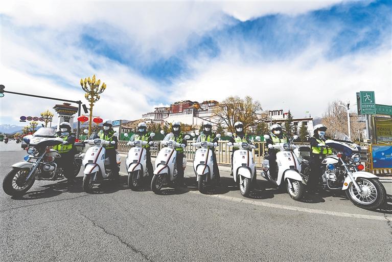 拉薩市公安局交警支隊(duì)城北大隊(duì)女子中隊(duì)交警颯爽英姿。記者 唐斌 攝