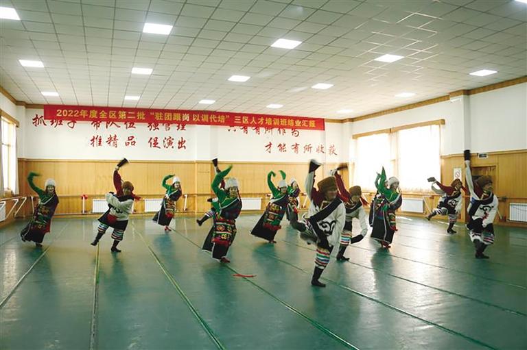 2022年3月,為進(jìn)一步做好全區(qū)縣區(qū)舞蹈演員專業(yè)技能的提升工作,自治區(qū)歌舞團(tuán)啟動(dòng)了全區(qū)第二批“駐團(tuán)跟崗、以訓(xùn)代培”日喀則市、阿里地區(qū)藝術(shù)團(tuán)舞蹈演員培訓(xùn)工作。自治區(qū)歌舞團(tuán)黨委副書記、團(tuán)長(zhǎng)高英介紹,第二批參訓(xùn)學(xué)員分別來(lái)自阿里地區(qū)措勤縣、改則縣、革吉縣、普蘭縣、日土縣,和日喀則市亞東縣、昂仁縣、定日縣、薩迦縣、吉隆縣、崗巴縣、仲巴縣、薩嘎縣等14個(gè)縣。