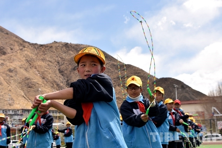 圖為活動現(xiàn)場學(xué)生在學(xué)跳繩 攝影:次旦拉姆