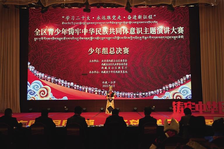 4月7日,由共青團西藏自治區(qū)委員會、西藏自治區(qū)民族事務(wù)委員會、自治區(qū)教育廳聯(lián)合主辦,西藏青少年實踐教育基地承辦的“學(xué)習(xí)二十大 永遠跟黨走 奮進新征程”全區(qū)青少年鑄牢中華民族共同體意識主題演講大賽總決賽在拉薩市舉行。現(xiàn)場,記者了解到,此次大賽歷經(jīng)3個月時間,覆蓋全區(qū)7市(地)、7所高校、74個縣(區(qū))、740余個村(居)、140所中小學(xué),2000余名各族青少年積極參加各級預(yù)賽,其中58名優(yōu)秀青少年4月7日在拉薩市參加少年組、村居展示組和青年組三個組別的總決賽。