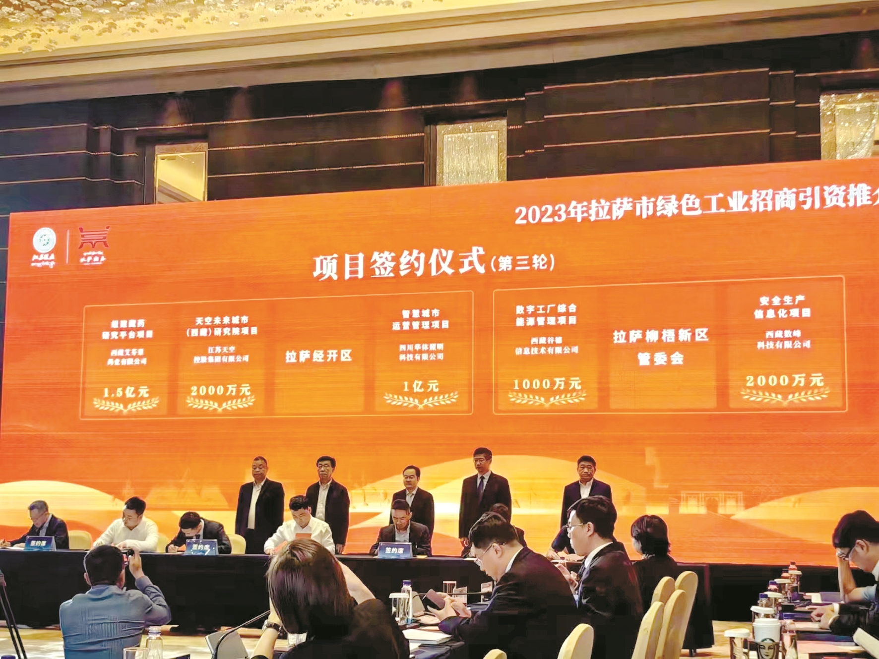 4月17日,2023年拉薩市綠色工業(yè)招商引資推介會暨項目簽約儀式在南京舉行,活動由拉薩市人民政府、西藏自治區(qū)招商局、江蘇援藏前方指揮部主辦,拉薩市商務(wù)局、拉薩經(jīng)濟技術(shù)開發(fā)區(qū)聯(lián)合承辦。江蘇省商務(wù)廳副廳長倪海清、江蘇省工業(yè)和信息化廳二級巡視員宋旭東、西藏自治區(qū)招商局副局長次旦格來應(yīng)邀出席活動并致辭,簽約企業(yè)代表、拉薩市各縣(區(qū))、經(jīng)濟功能園區(qū)分管招商工作負責(zé)人以及知名企業(yè)代表近140余人參加推介會。本次推介會共簽約項目15個,協(xié)議投資達32.3億元。