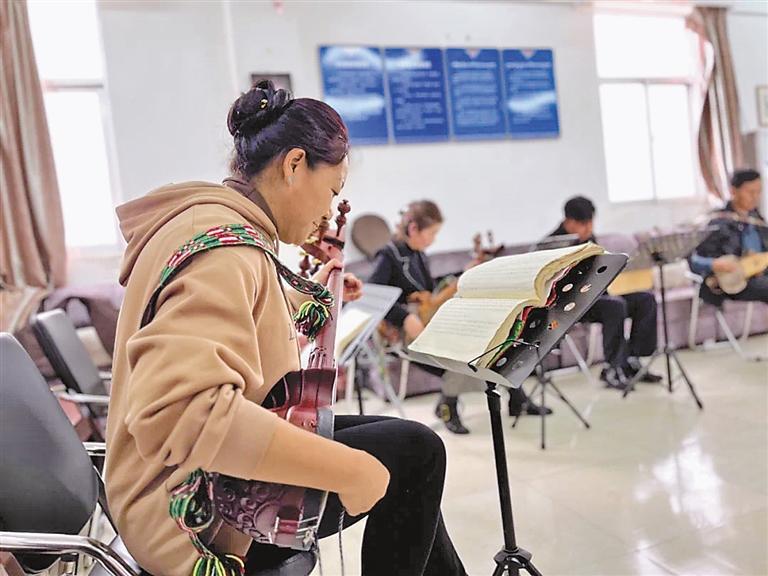 圖為學(xué)員在認(rèn)真練習(xí)“扎念琴”指法。記者 拉巴桑姆 攝