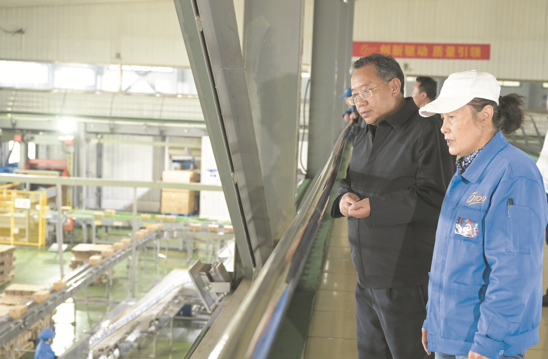 5月8日至9日,自治區(qū)黨委常委、市委書記普布頓珠赴聯(lián)系縣當雄縣開展主題教育調研。這是普布頓珠在西藏冰川礦泉水有限公司詳細了解企業(yè)概況、生產經營、發(fā)展規(guī)劃等情況。拉薩融媒記者 貢覺群培攝