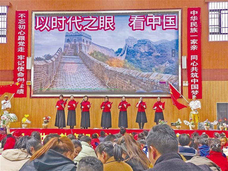 圖為康馬縣教育系統(tǒng)“書香新時(shí)代 ‘典’亮新征程”中華經(jīng)典誦讀大賽決賽現(xiàn)場(chǎng)。記者 汪純 攝