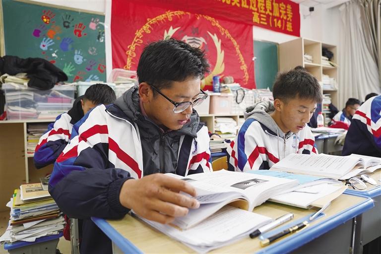 “叮鈴鈴”……隨著下課鈴聲響起,教室瞬間“熱鬧”了起來(lái)。有的同學(xué)走出教室活動(dòng)久坐的身體、有的同學(xué)拿出習(xí)題冊(cè)和同桌小聲地討論、有的同學(xué)向老師請(qǐng)教不明白的知識(shí)點(diǎn)……清風(fēng)拂過(guò),暖暖的陽(yáng)光照在這些青春的身影上,演繹出一首屬于青春的奮斗頌歌。“現(xiàn)在是最緊要的關(guān)頭,必須把全部精力投入到學(xué)習(xí)中,爭(zhēng)取多掌握一些知識(shí)點(diǎn)。”高三12班學(xué)生索朗旦增說(shuō),“我的目標(biāo)是西南政法大學(xué),希望通過(guò)自己的努力能實(shí)現(xiàn)這個(gè)夢(mèng)想?!?/p>