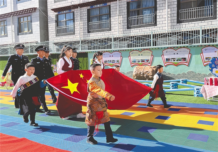 拉薩市實(shí)驗(yàn)幼兒園東城分園舉行“唱國(guó)歌、升國(guó)旗”儀式。記者 旦增蘭澤 攝
