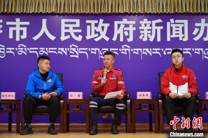圖為拉薩市青年志愿救援隊(duì)代表陳雷(中)正在分享志愿服務(wù)經(jīng)歷?!∝暩聛?lái)松 攝