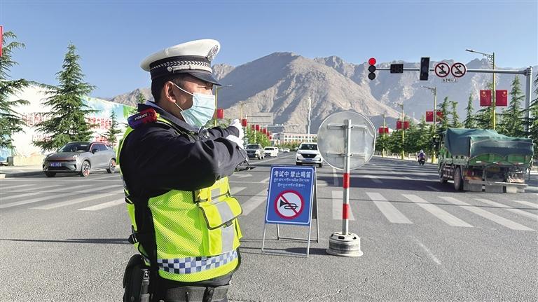 6月7日,記者駕車前往拉薩市第二中等職業(yè)技術(shù)學(xué)??键c(diǎn),一路暢通無阻,拉薩交警早早地就來到各考點(diǎn)執(zhí)勤,疏導(dǎo)交通。在考點(diǎn)周圍,路段上“禁鳴”“減速慢行”等交通標(biāo)志牌已經(jīng)設(shè)置完畢,社會車輛在交警的指揮下快速通行。家長平措卓嘎告訴記者:“孩子今天是學(xué)校統(tǒng)一送到考點(diǎn)的,我們家長一路過來看到每個(gè)考點(diǎn)周圍都有交警執(zhí)勤,周邊交通也很暢通,非常感謝交警同志的辛勤工作。”