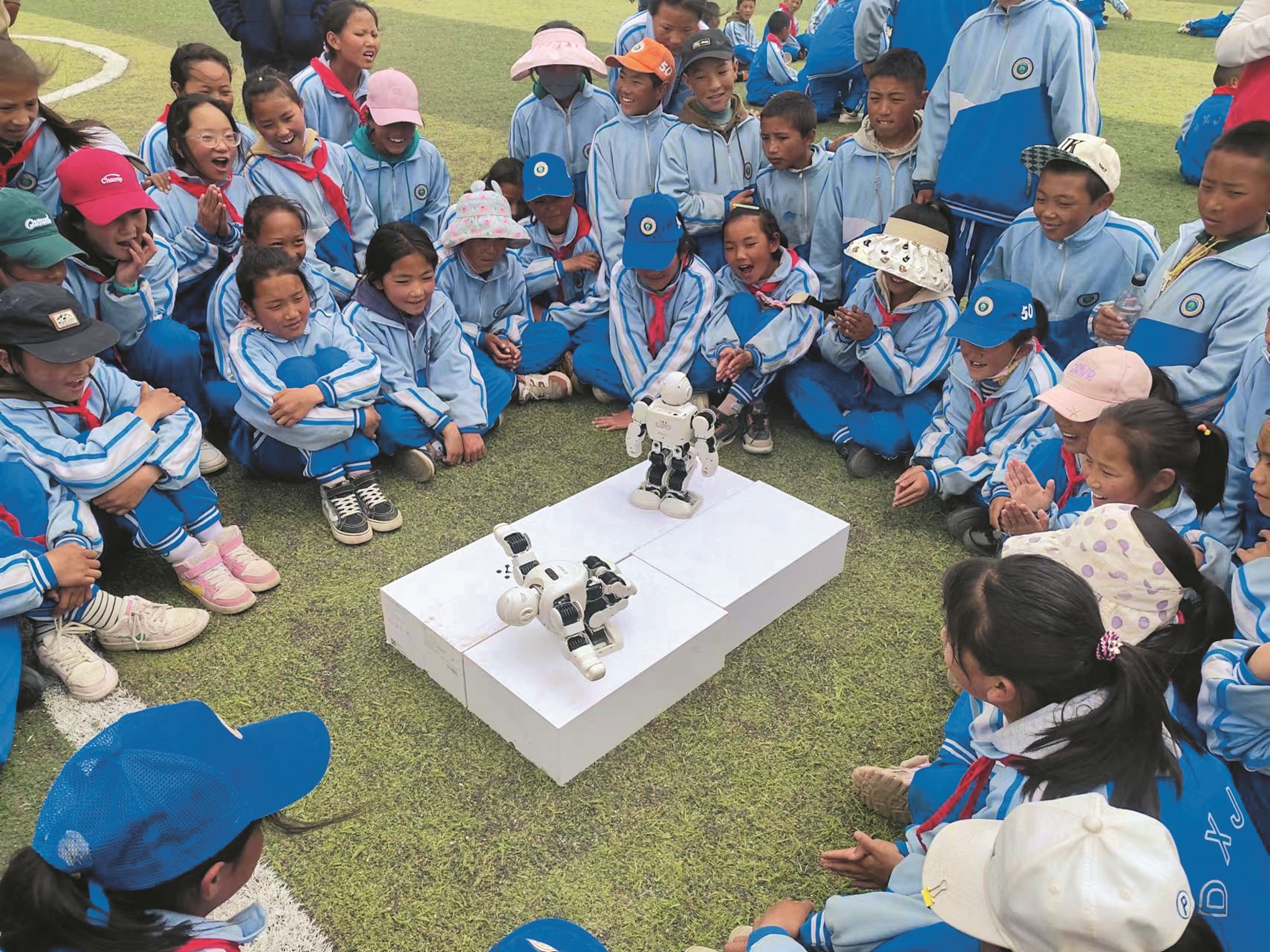“你們有沒有上科學(xué)課?”“老師都講些什么內(nèi)容?”近日,在當(dāng)雄縣羊八井鎮(zhèn)中心小學(xué),市科協(xié)的工作人員正在給學(xué)生講解發(fā)展科學(xué)對(duì)生活的重要性,隨后工作人員將學(xué)生分為兩組,有序體驗(yàn)機(jī)器人和VR眼鏡。在工作人員的操作下,機(jī)器人做出唱歌、跳舞、講故事、做操等動(dòng)作。旁邊體驗(yàn)VR眼鏡的學(xué)生不時(shí)伸伸手、踢踢腳,想去觸摸通過眼鏡看到的物體。