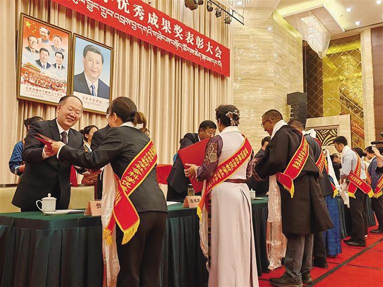記者從表彰大會上了解到,2021年10月12日,自治區(qū)政府辦公廳印發(fā)了《西藏自治區(qū)哲學(xué)社會科學(xué)優(yōu)秀成果獎勵辦法》。《辦法》規(guī)定,西藏自治區(qū)哲學(xué)社會科學(xué)優(yōu)秀成果獎是由自治區(qū)人民政府頒發(fā)的全區(qū)哲學(xué)社會科學(xué)研究領(lǐng)域最高獎項,評獎工作每兩年開展一次;獎項分為著作類、論文類、報告類,分別設(shè)一等獎、二等獎、三等獎。對推動學(xué)科體系、學(xué)術(shù)體系、話語體系建設(shè)有突出貢獻的成果,設(shè)特等獎。