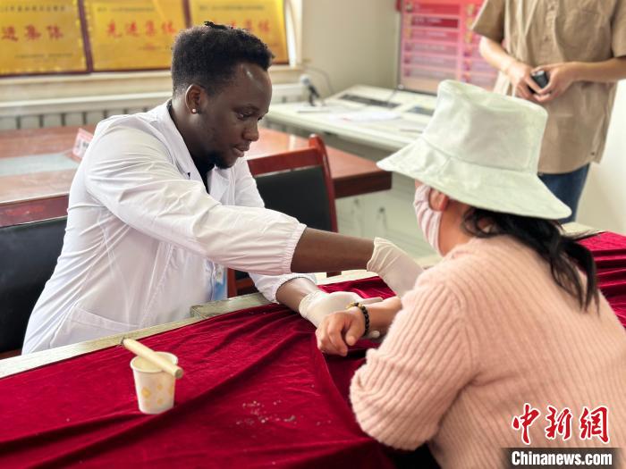 圖為贊比亞留學(xué)生為紅崖溝村村民診療。 劉洋 攝